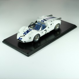 Tightly tied of the Birdcage, the Maserati tipo 63 entered at the 24 hours Le Mans 1961. It characterizes by the 12 cylinders engine with 4 exhaust pipes. Its incredible lines create an impressive car. The n°7 with Cunningham colors, won the 4 place. Model resin available in 1:24 scale.Handscrafted by Profil 24 models.Ex. VAT if based outside the EC. ENDED